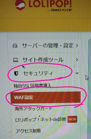 左側メニューからセキュリティのWAF設定を選択します↓↓