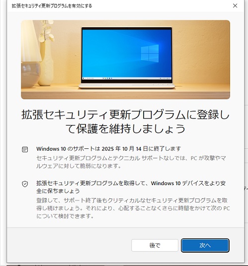その下の拡張セキュリティ更新プログラムに登録して、、、、の下