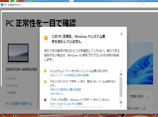 マイクロソフトの期限が2025年10月14日までということで「10→11」のバージョンアップをしようとしたのですがパソコンが古いのでダメ見たいです