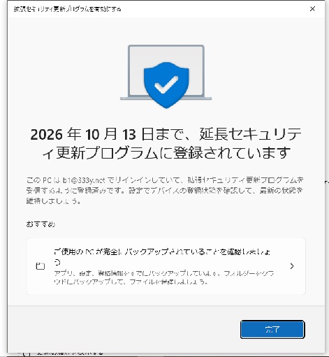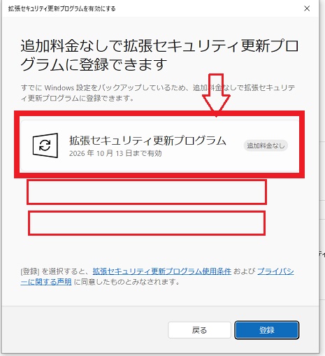 ↑調べたサイトでは 「拡張セキュリティ更新プログラム」の登録には 「無料」「ポイント」「有料」の3つがあると書いてありましたが 私の場合は「無料」ひとつだけが出てきました